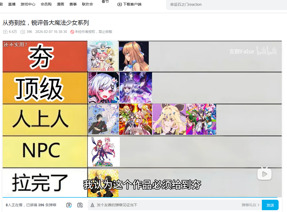 【从夯到拉,锐评各大魔法少女系列】 【精准空降到 06:47】 https://www.bilibili.com/video/BV1uDFHzZE4p/
